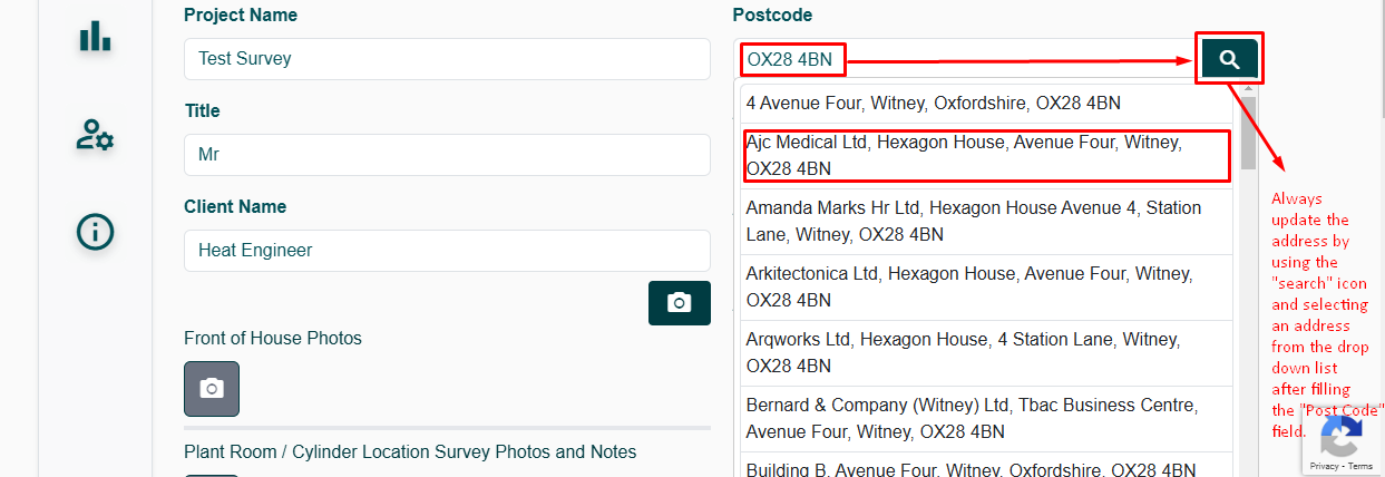 If the address is manually filled in Step 1 - the degree day data, altitude, design temperature, and ground temperature fields will be blank. Please ensure that you fill out the postcode and update the address using the "search" icon. When the address is updated this way all the above-mentioned fields will be automatically populated.